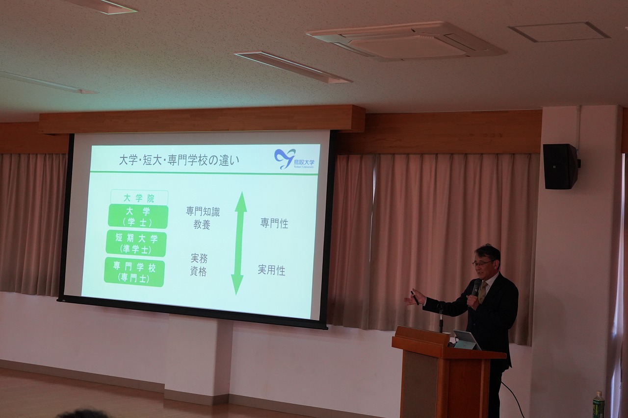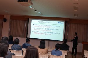 森川教授の講演会です。とても分かりやすく、楽しく大学の仕組みを説明してくださりました。