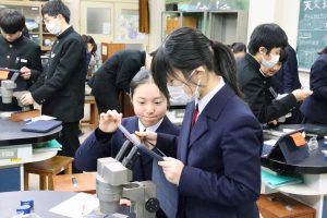 先週末に訪れた”最長寒波”の影響は、鳥取でも顕著でした。休日も一日中雪かきに奮闘されていたのではないでしょうか。まだまだ寒さは続きますが、生徒たちはいつも通り授業に取り組み、休憩時間も全力で遊ぶ姿が見られました。やはり、生徒たちの元気な姿を見るとほっとしますね。26日(月)理科の授業に、昨年からお世話になっています文部科学省学力調査官の神先生に来校いただき、理科の研究に指導助言いただきました。授業内容はもちろんですが、生徒たちの生き生きとした表情や目の輝きが”知の探究”の源であろうと褒めていただきました。主体的に学びたいという思いがあってこその学力向上であると再確認させていただきました。
