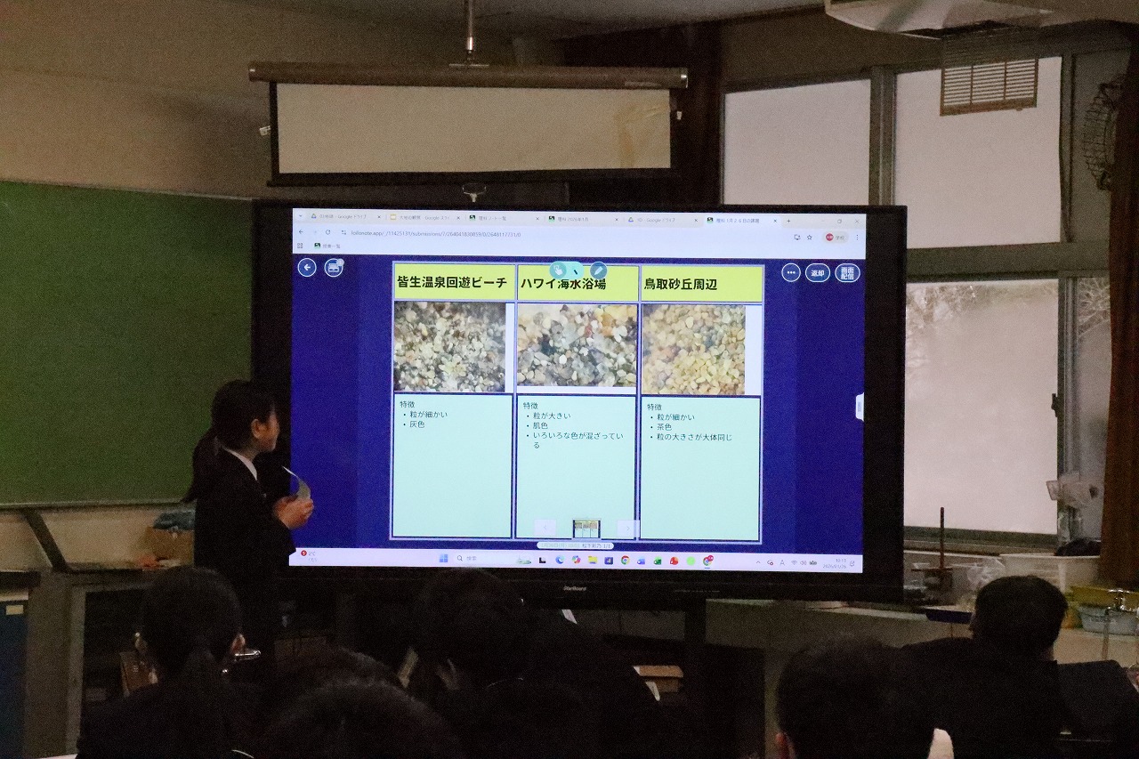 先週末に訪れた”最長寒波”の影響は、鳥取でも顕著でした。休日も一日中雪かきに奮闘されていたのではないでしょうか。まだまだ寒さは続きますが、生徒たちはいつも通り授業に取り組み、休憩時間も全力で遊ぶ姿が見られました。やはり、生徒たちの元気な姿を見るとほっとしますね。26日(月)理科の授業に、昨年からお世話になっています文部科学省学力調査官の神先生に来校いただき、理科の研究に指導助言いただきました。授業内容はもちろんですが、生徒たちの生き生きとした表情や目の輝きが”知の探究”の源であろうと褒めていただきました。主体的に学びたいという思いがあってこその学力向上であると再確認させていただきました。