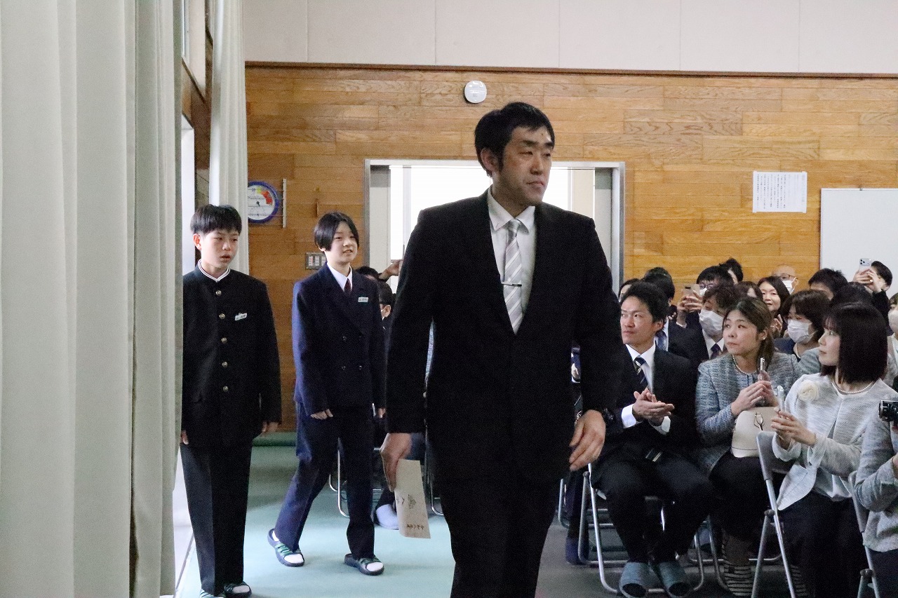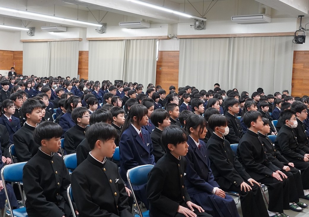 真新しい制服に身を包み、とても初々しいですね。そして真剣な眼差しで聞いています。