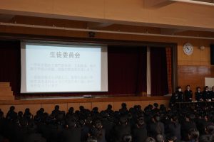 PWを使用してわかりやすく、生徒会の仕組みや中学校生活などについて説明がありました。