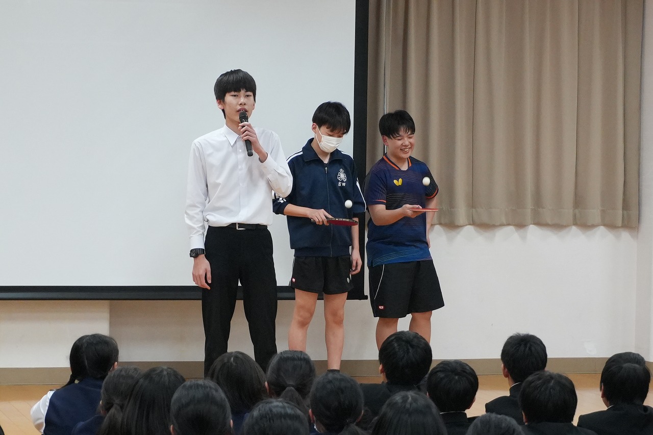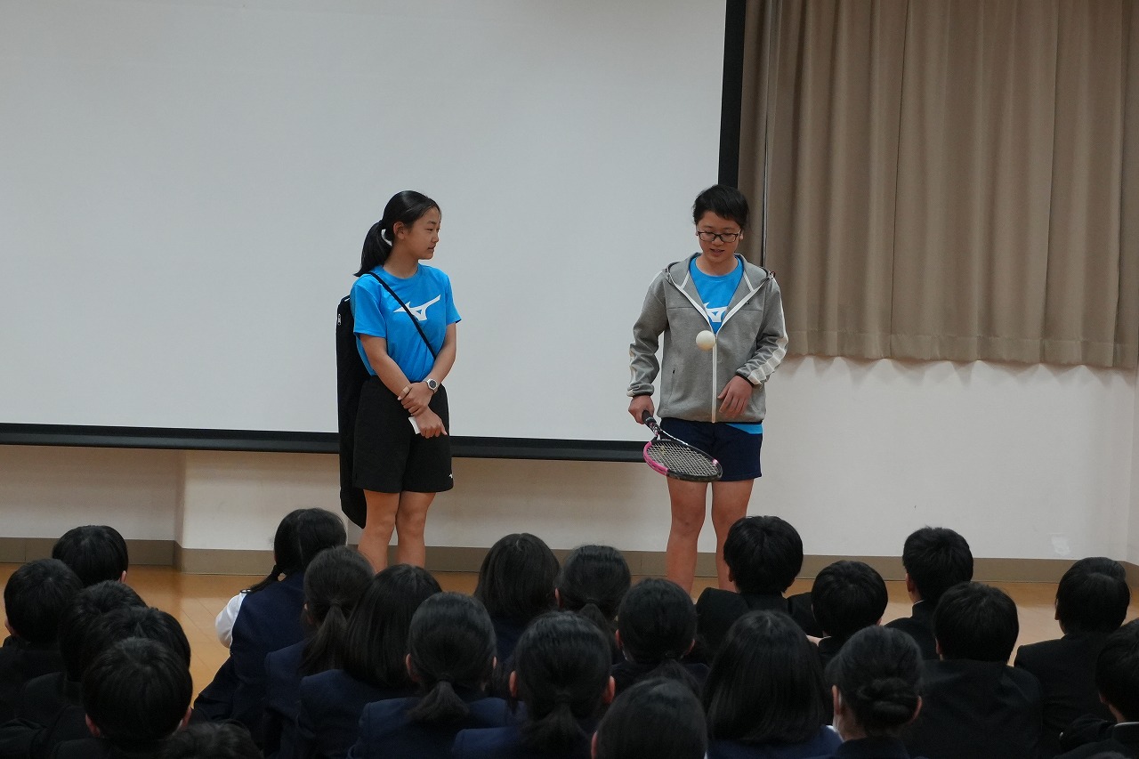 卓球部やソフトテニス部は実際にラケットさばきを披露!