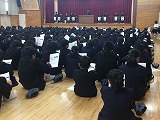 5月2日(火)に生徒総会が開かれました。執行部からの提案事項[①前期生徒会スローガン(前期生徒会活動方針) について ②【Piece】を生かす学級会について ③さわやかマナーについて ④学年の【架け橋】になる交流活動について ⑤みんなの未来に【架ける】活動について ⑥【架け橋】になる広報活動について ⑦平成29年度生徒会会計予算案について]と各専門委員会からの提案事項[①生活委員会より ②学習委員会より ③図書委員会より ④保体委員会より ⑤給食委員会より ⑥福祉委員会より]がそれぞれ承認されました。これをもって、平成29年度前期の生徒会活動が本格的に動き出します。