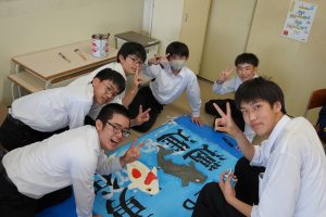 絆を深める学級旗制作 2025.05.22 来月21日(土)に開催予定の運動会に向けていろいろな活動が始まっています。各学年種目や生徒会種目の企画・運営、そして本日紹介する「学級旗」制作もその一つです。この学級旗は運動会当日にクラスの応援として使用されるだけでなく、クラスの”絆”のシンボルでもあります。およそ2週間後に迫る東部地区総体やサマーブラスコンサートの準備もあり、限られた時間の中で工夫しながら、どのクラスも笑顔で楽しそうに取り組み、放課後の有意義な時間を過ごしています。 « お知らせ一覧に戻る