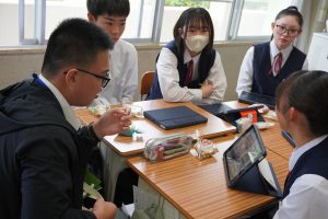 互いの学校紹介を英語でプレゼンしました。まずは台湾東海大学附属高中学校です。