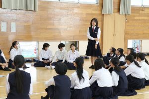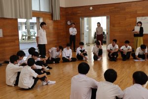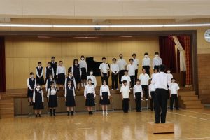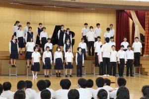 朝夕は気温も低くなりやっと秋の気配を感じられる今日この頃、中学校では毎日”文化の薫り”に包まれて過ごさせていただいています。朝、どこからとなくクラス合唱曲のメロディーが流れてきますし、給食中はクラス合唱曲をBGMに楽しく食事をしています。そして今日は縦割りの異学年交流として、1~3年生の合唱を披露し合いました。後輩は先輩から歌唱の技術はもちろん、合唱への思いなどたくさん学んでいましたし、先輩は後輩へやさしく指導する場面が見られました。いよいよ10月24日(金)文化祭本番へ向けて、ステージ発表やリハーサルの準備に余念がありませんが、附中生頑張っています!